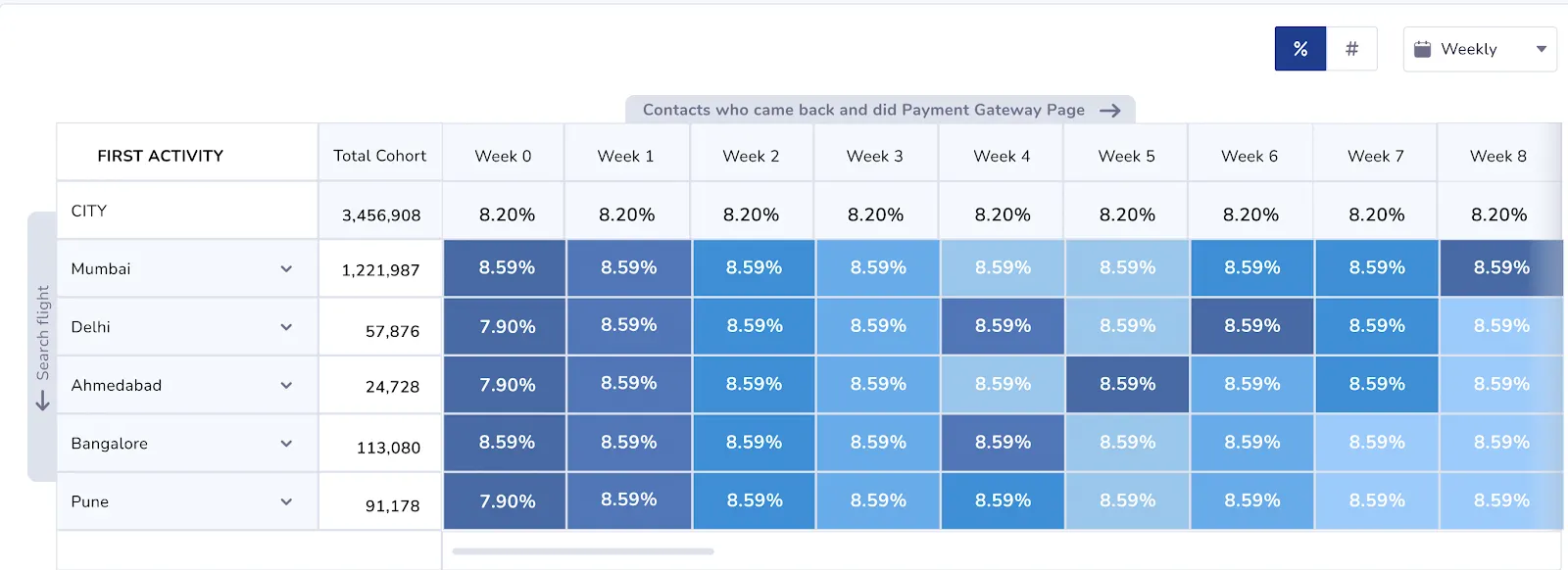 How They Used Cohorts: Pepe Jeans leveraged Netcore’s Cohorts module to identify repeat-purchase patterns, tracking user behavior week-over-week. These cohort insights were then mapped to RFM segments, enabling them to: